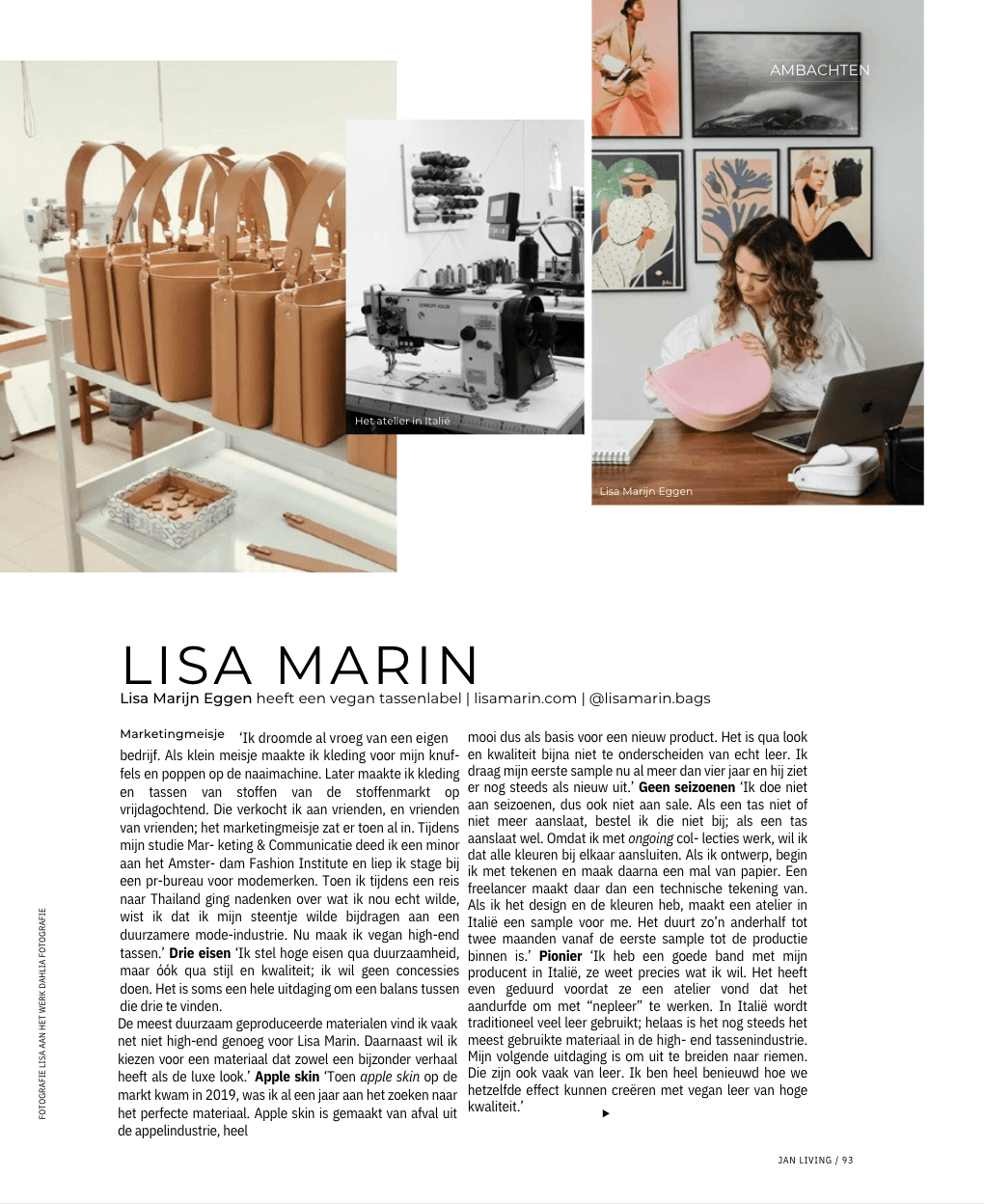 Founder Lisa Marin faces the challenge of not only captivating her target audience with the stylish design of her bags but also immersing them in the story behind each piece. Her goal was to prove that style and sustainability can go hand in hand.